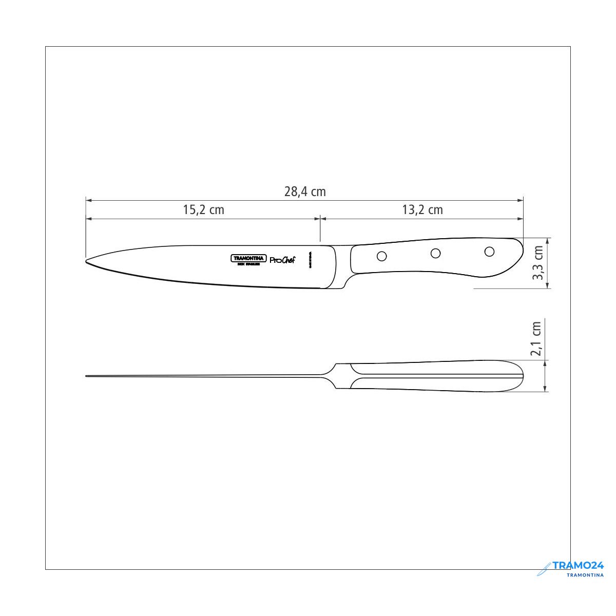 ТипножНазначение ножаразделочныйОбщая длина282 мм.Длина лезвия153 мм.Ширина лезвия (макс.)27 мм.Толщина обуха2 мм.Тип лезвия и заточкиПрямое, двухстороннееМатериал лезвиянержавеющая стальМарка сталиDIN 1.4110Твердость клинка56.58 HRCКованыйестьШирина рукояти (макс.)25 мм.Толщина рукояти20 мм.Материал рукоятиПоликарбонатЦвет рукоятичерныйВес134 гр.УпаковкаБлистерВес в упаковке210 гр.Антибактериальное покрытиеестьМытьё в посудомоечной машинеестьПроизводительTramontinaСтрана производстваБразилия
