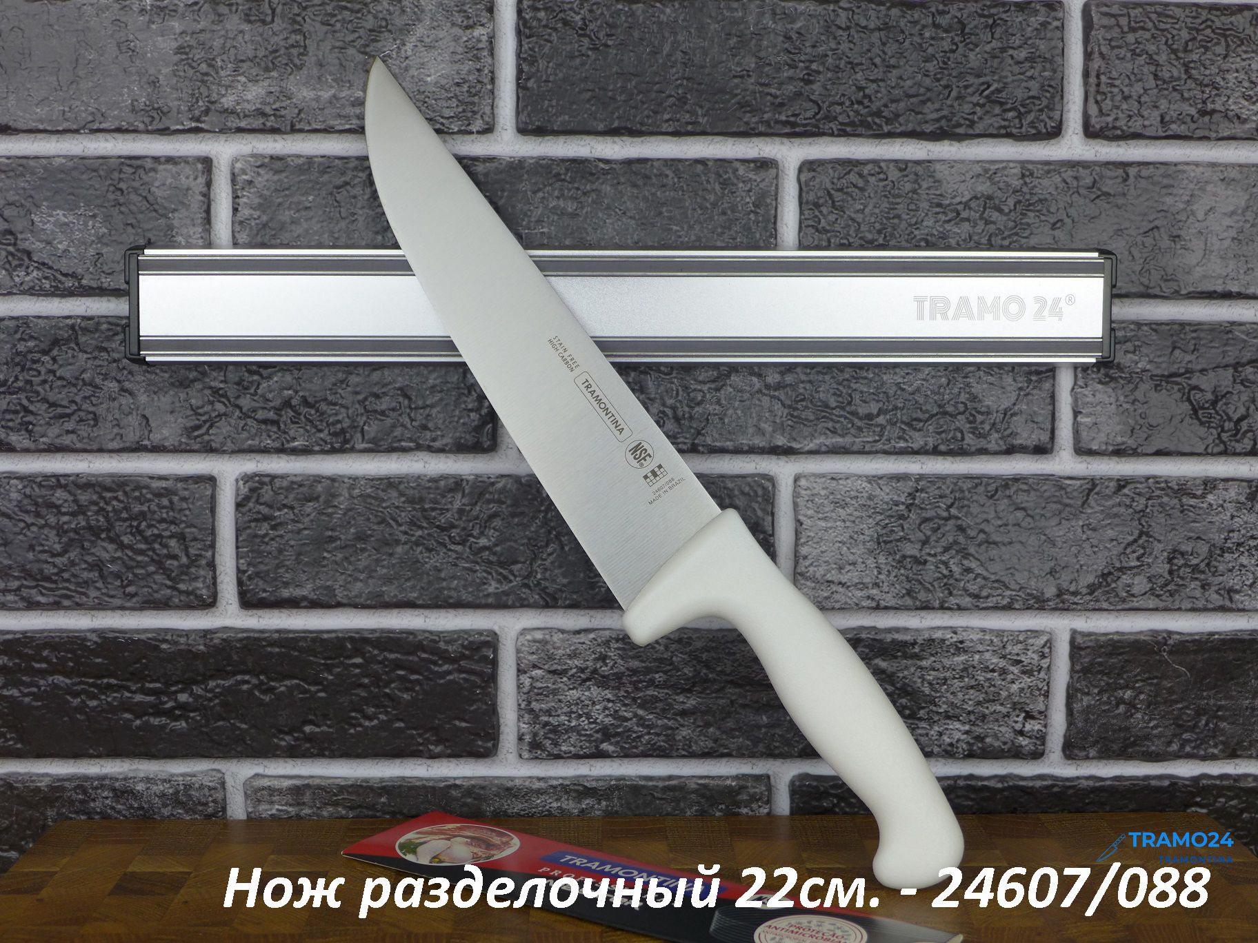 ТипножНазначение ножаразделочныйОбщая длина355 мм.Длина лезвия220 мм.Ширина лезвия (макс.)48 мм.Толщина обуха2.5 мм.Тип лезвия и заточкиПрямое, двухстороннееМатериал лезвиянержавеющая стальМарка сталиDIN 1.4110Твердость клинка54.56 HRCМатериал рукоятипластикЦвет рукоятибелыйВес157 гр.УпаковкаКартонный чехол на лезвиеАнтибактериальное покрытиеестьМытьё в посудомоечной машинеестьПроизводительTramontinaСтрана производстваБразилия